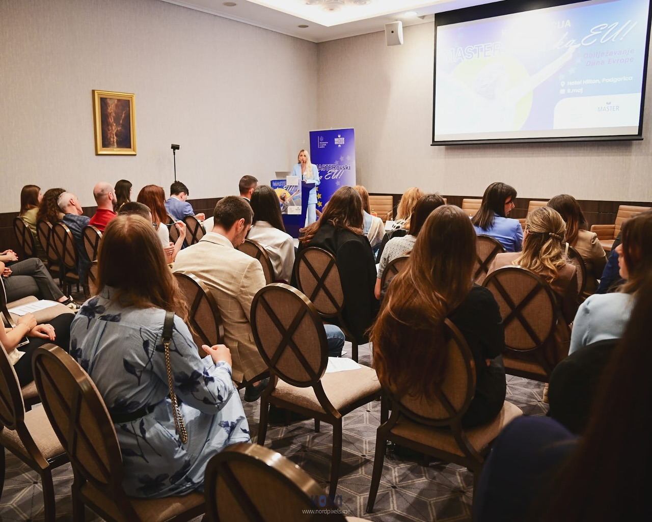 Na Dan Evrope, 9. maja, MASTER tim u Podgorici je okupio mnogobrojne aktere na Forumu ‘MASTERovski ka EU”. Forumom „MASTERovski ka EU“, svečano je zaokružen desetomjesečni projekat koji je dao glas mladima, otvorio dijalog, postavio pitanja i ponudio odgovore. Što je najvažnije – pokazao da imamo generaciju mladih koji mogu da vode Crnu Goru ka EU putu. U uvodnom dijelu, prisutnima su se obratile: mr Andrea Popović, izvršna direktorka MASTER-a, koja je poslala snažnu poruku: